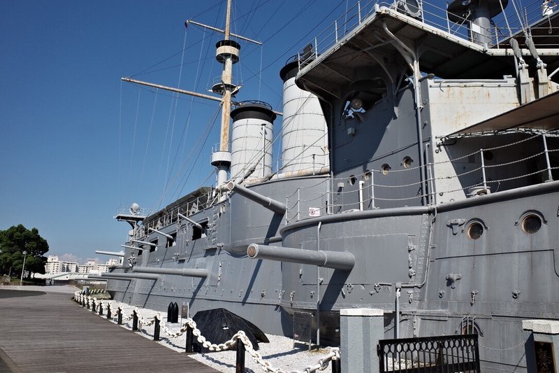 午前中はやることがあって、遊び始めたのは昼頃から。軍港めぐりのチケット売り場があるコースカベイサイドストアーズでかーるく昼食をとりました。急げば13時出港に間に合いそうでしたがそこは退職の身、時間はそこそこにあるので、最終の15時出港に間に合わせればいいと考えました。それまで2時間ほどあるので、歩いて三笠公園へ。1.2kmとちょっと距離はありますが、いつも散歩している私もとっては大した距離になりません。どぶ板通りの店を見ながら歩けばあっという間に到着します。